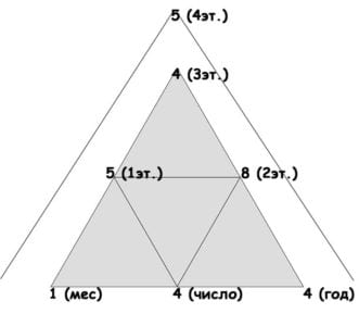 Для вычисления первого этапа жизни необходимо суммировать число месяца и года рождения. Пример: 4 Этап = 10 + 1984 = 10 + 22 = 32 = 5